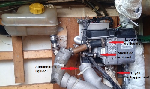 1- Débranchez le tuyau d’échappement, les tuyaux d’admission et d’écoulement de liquide de refroidissement, ainsi que la conduite du carburant.