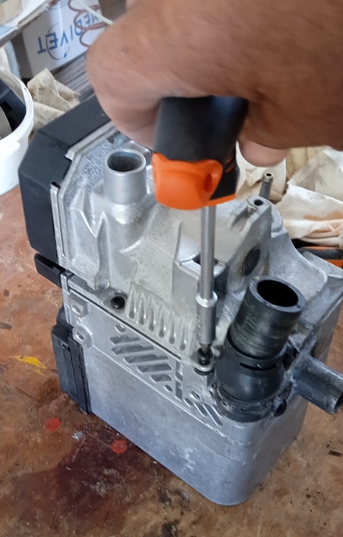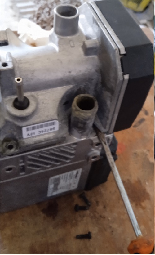 6- Dévissez les quatre vis pour ouvrir la soufflante d’air comburant.