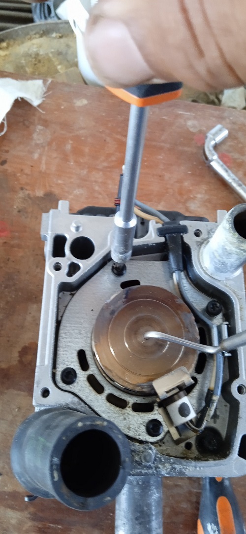 8- Dévissez les quatre vis de la chambre de combustion.